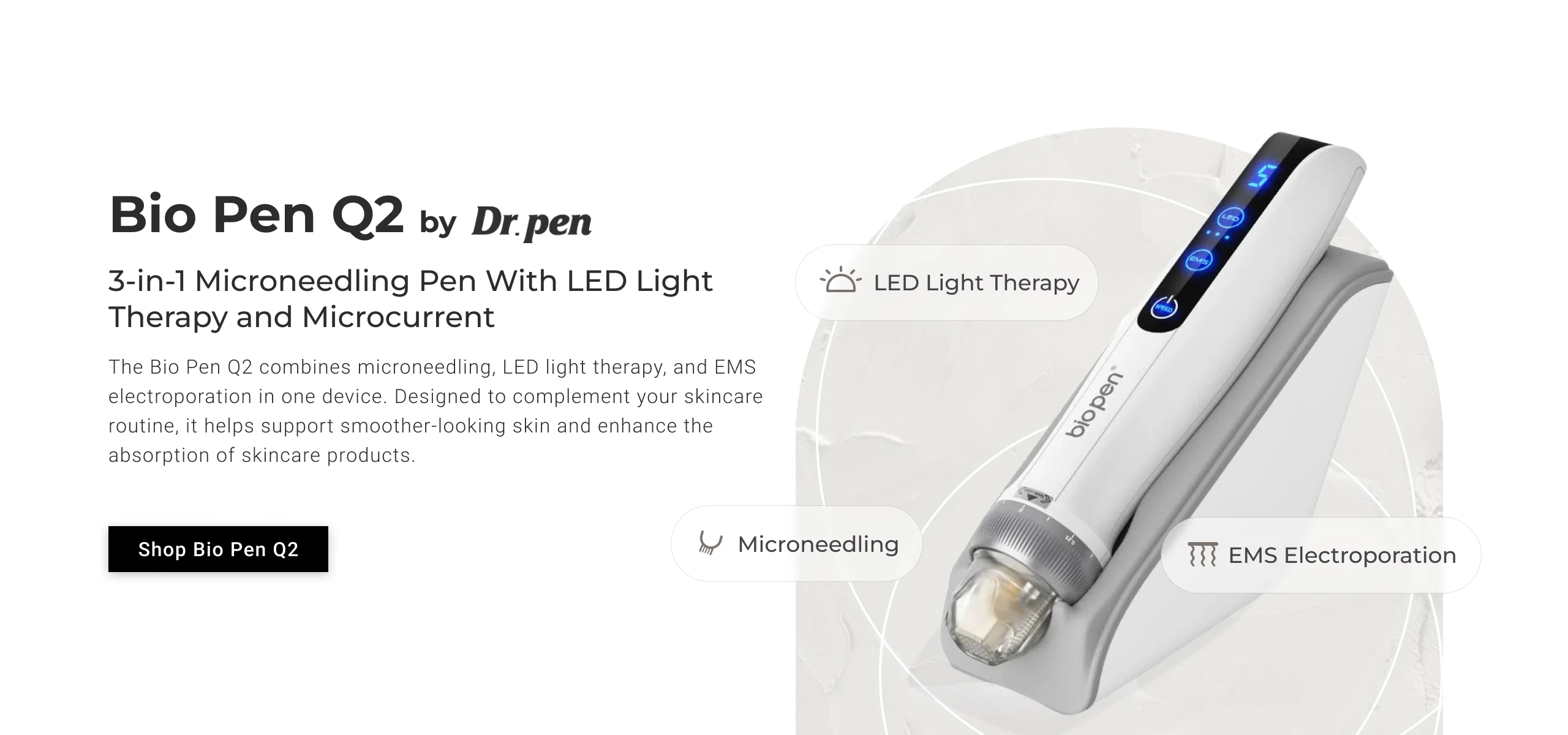 Bio Pen Q2 By Dr. Pen 3-in-1 Microneedling Pen With LED Light Therapy and Microcurrent
